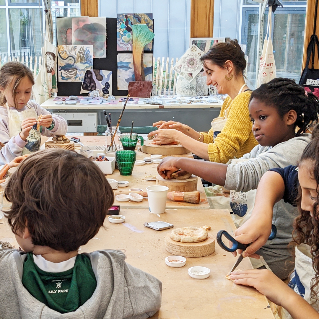 Last october we offered a creative workshop to the inhabitants of the ecodistrict of l'Ile Saint-Denis. Neighbours, children and adults, gathered together in the Studio to explore and transform organic materials that we previously collected. Participants then created collaborative sculptures and displayed them in the district. Coffee grounds, mica flakes, dried petals and vegetable peels or even paprika, there was something to suit all tastes!